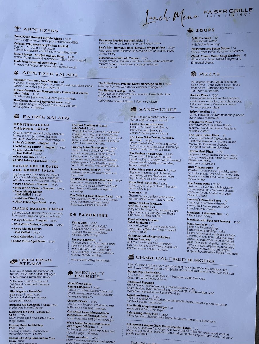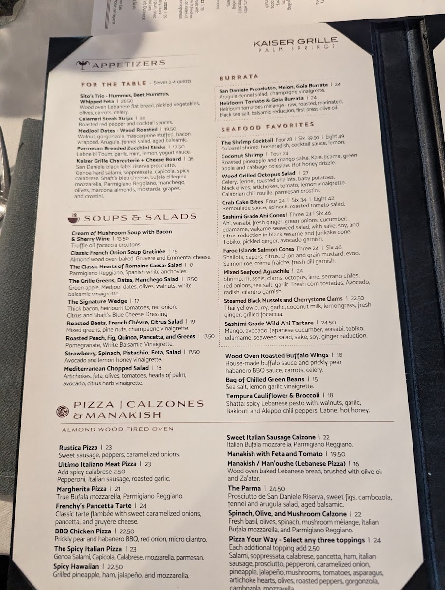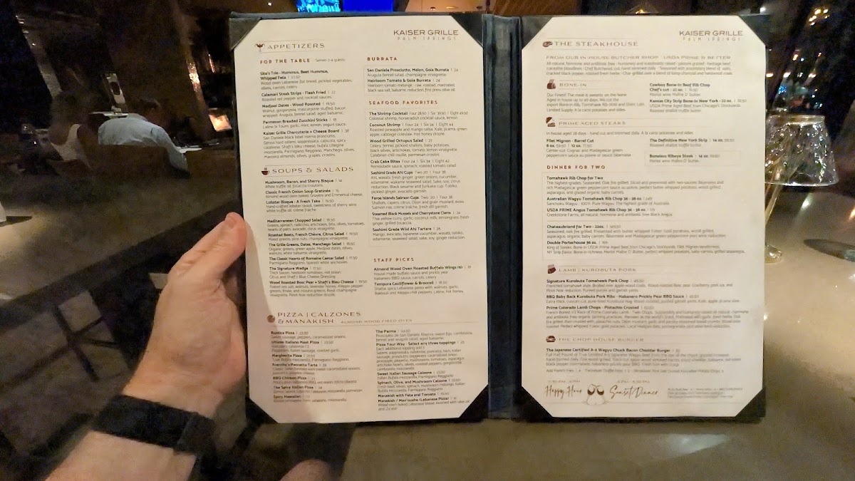 Okay, seriously, Kaiser Grille in Palm Springs? You have to go. The food was just incredible – like, every single bite. So relaxed and welcoming, a really great place to just chill and enjoy your meal and people watch .Honestly, the service was top-notch too. We even had the pleasure of meeting Michael, the manager, who was just fantastic. He really went out of his way to make sure we had a great time. Seriously, if you're in Palm Springs you gotta try this place out . You’ll thank me later . Kaiser Grille gets a huge thumbs up from me – definitely check it out!"