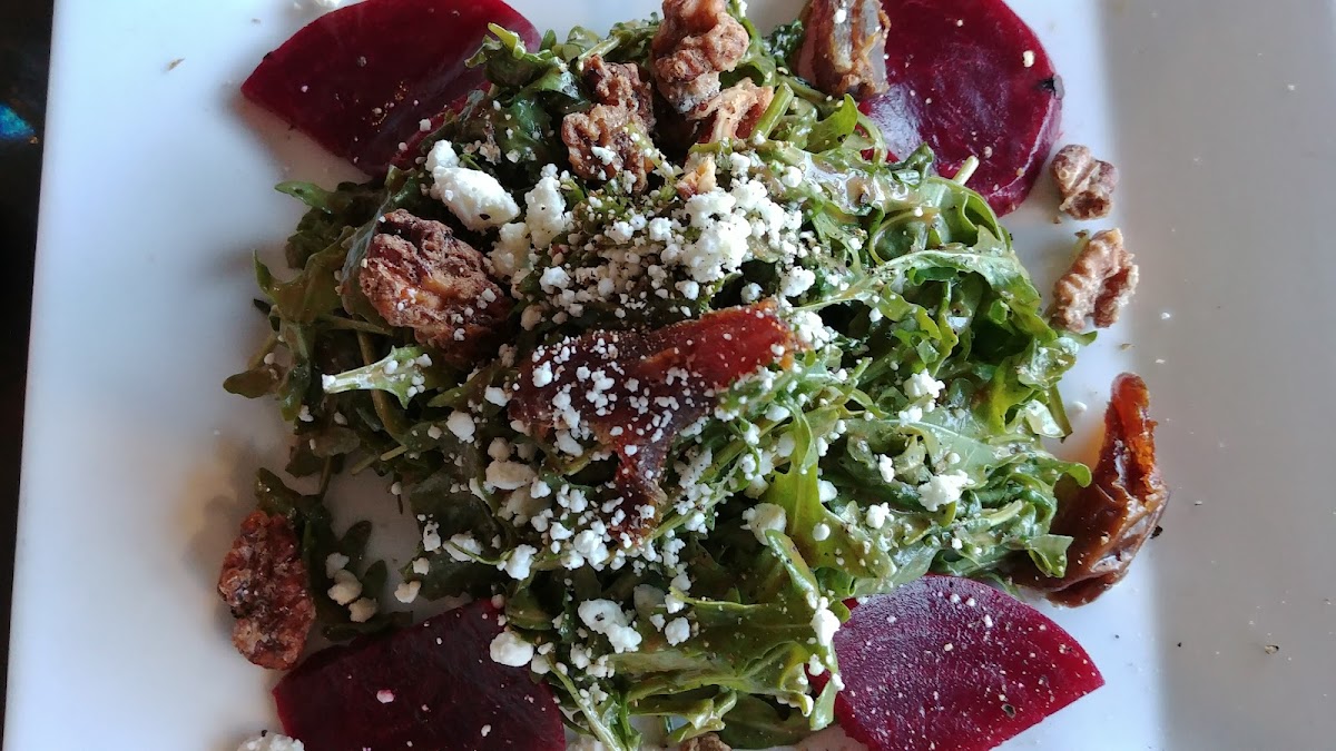 Our group ordered off their sunset menu this time. Entree price includes soup and salad choices. The pasta choices were excellent but I was disappointed in the pork ribs. They were dry and not what I expected. Meanwhile, the service was excellent. This is a place that fell off our radar for several years. We recently went back to try their wood fired pizzas. They are awesome. They have several options to choose from or you can select your own toppings if you want to customize yours. They are large enough for two people to share unless you are starving, then you might also want to split the beet salad. Today was our second time back and we tried the sandwiches. I had the Ruben and hubby had the tuna melt. Both were excellent. The Ruben had a ton of corned beef. If I ordered it again, I would ask for a side of the Russian or Thousand Island dressing. ( I like lots of dressing). This is also a fun restaurant to sit outside and watch the people pass by.